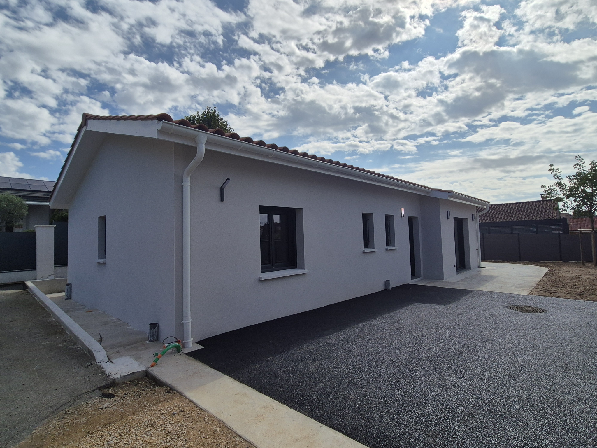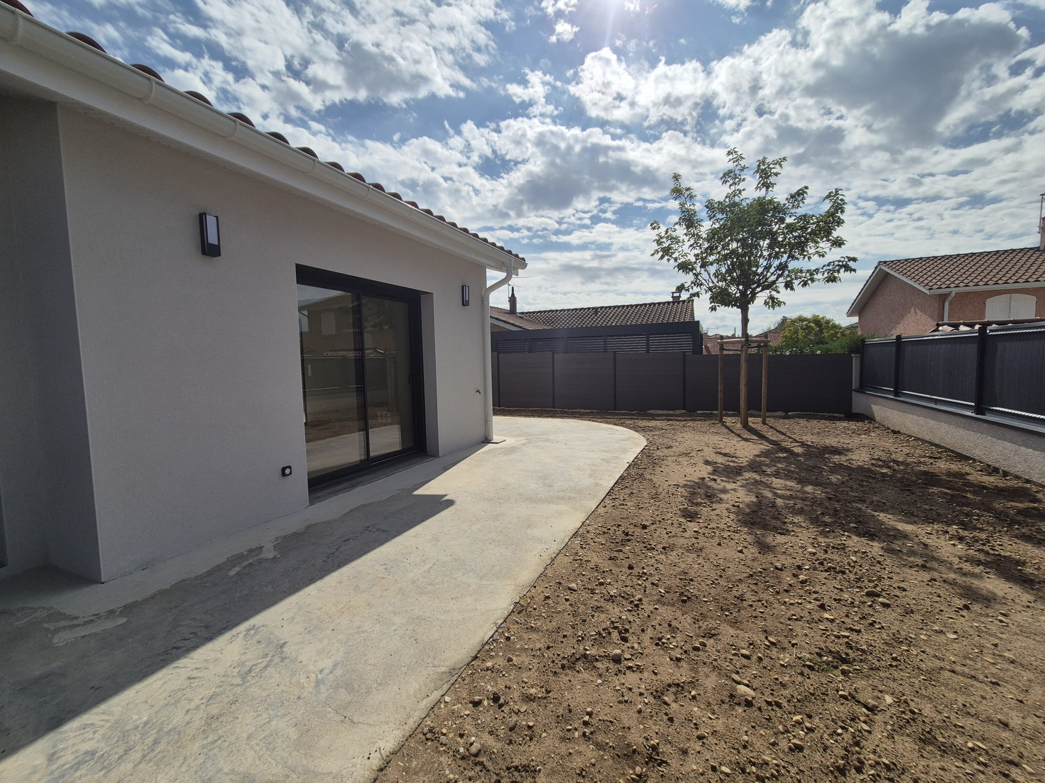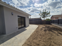 En fond d'impasse, au calme, maison de 2025 de plain-pied de 91 m². Elle se compose d'une entrée avec placard mural, partie nuit comprenant 3 chambres avec placards muraux, salle de bain et wc séparé. Terrain clos par portail électrique, deux terrasses et gazon syntétique, un abri jardin, une cour. Belles prestations - Chauffage pompe à Chaleur - cuisine équipée neuve. DISPONIBLE EN MARS 2026.