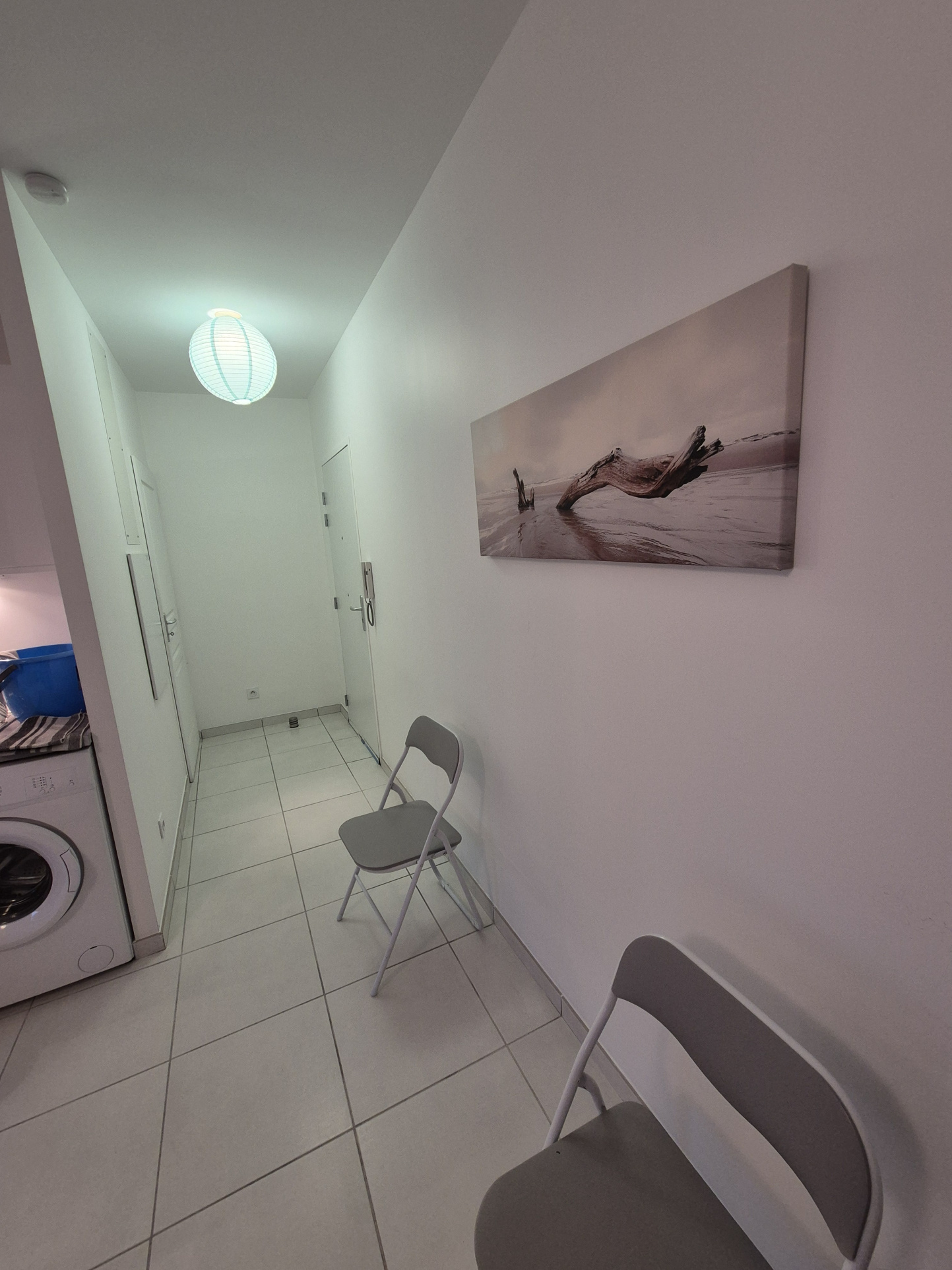 15 rue Delage CHASSIEU - DISPO LE 22.12.2025. Dans résidence sécurisée, studio MEUBLE de 32.77 m² avec terrasse et 1 place de parking.Il se compose d'une entrée avec placard mural, pièce de vie avec lit escamotable, cuisine toute équipée, machine à laver. salle d'eau avec douche et wc. terrasse de 16 m² . Une place de parking attitrée. Chauffae individuel gaz - Fenêtres pvc volets roulants électriques -